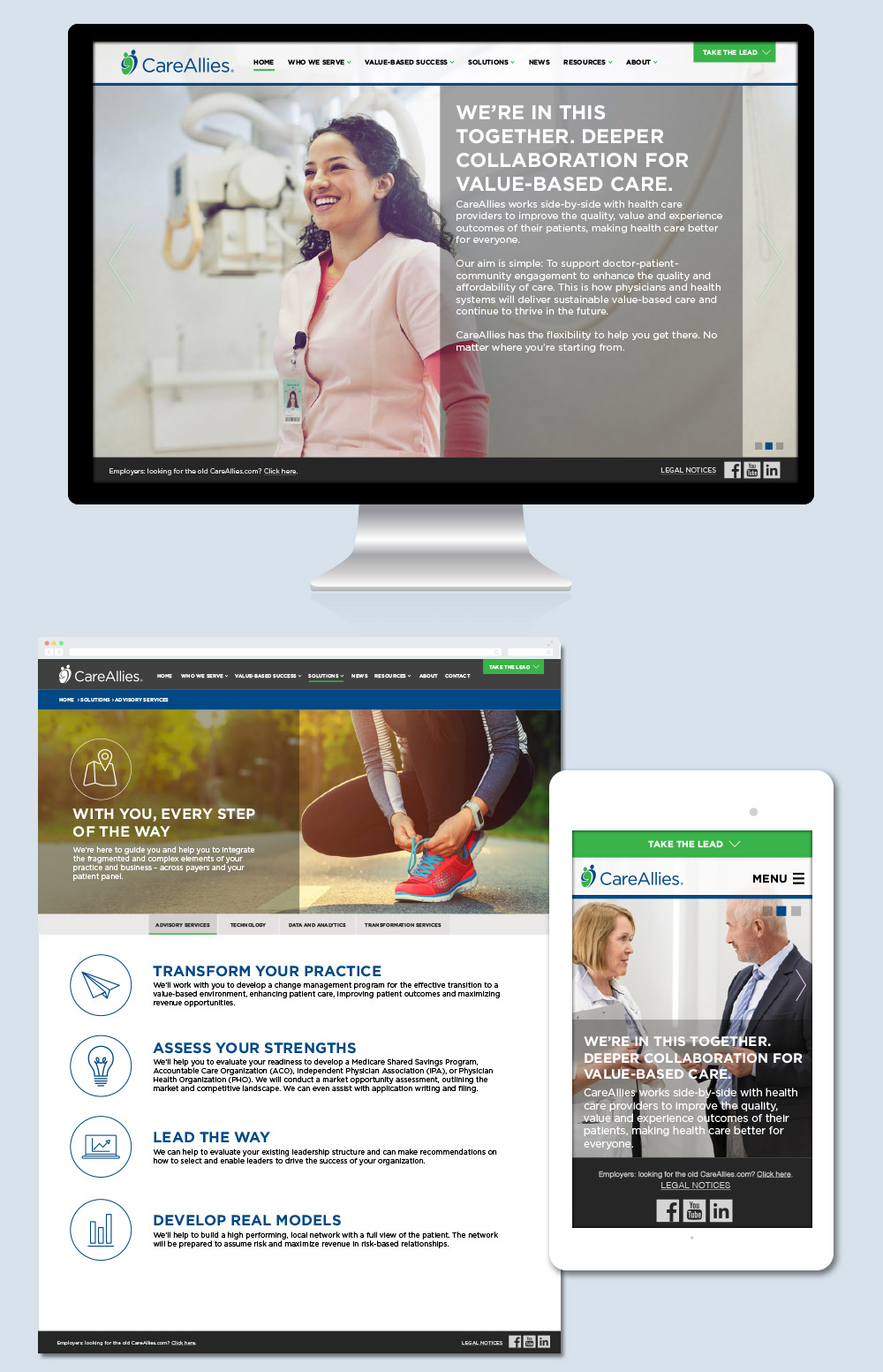 The task: Develop a customer-facing website and brand that will engage potential customers to consider the Cigna/CareAllies solution. The site consists of a collection of world-class capabilities and services designed to help customers effectively manage the long-term care of their patients and help them be successful under new value-based care models.